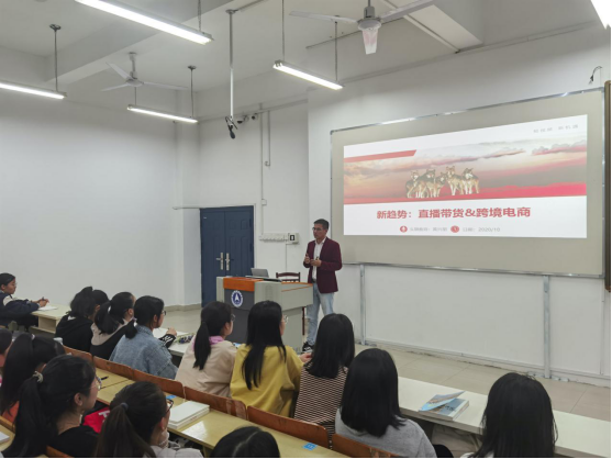 为加强对专业导论课程的改革和加深大一新生对商务人才就业创业的认识,公海gh555000aa线路检测邀请深圳市头狼电子商务有限公司联合创始人黄兴朋来公司讲学。10月26日晚,公海gh555000aa线路检测在明志楼123教室开展了“新趋势:直播带货&跨境电商”专题讲座。讲座由公司副经理阳正义主持,公司2020级商务英语、国际商务专业全体新生以及部分教师参加了此次活动。