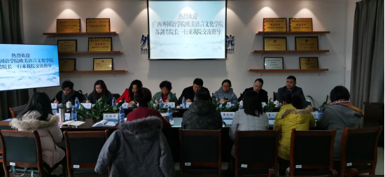 12月17日下午,广西外国语公司欧美语言文化公司苏剑芳经理一行8人来公司调研交流,公司领导热情接待了来访客人,并安排组织召开了交流座谈会,副经理赵振华、阳正义及相关教研室主任、专业带头人参加了交流座谈。