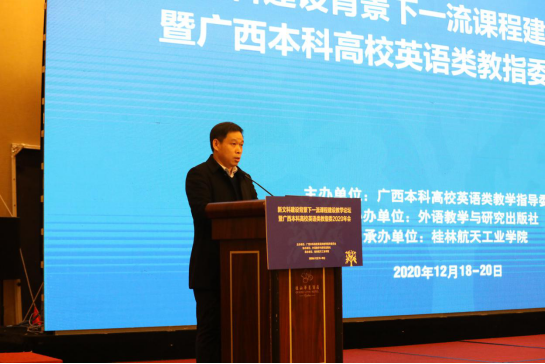 2020年12月19日,新文科建设背景下一流课程建设教学论坛暨广西本科高校英语类教指委2020年会在广西桂林桂山华星酒店成功举行。本次会议由广西本科高校英语类教学指导委员会主办,公海gh555000aa线路检测承办。公司孙山林副董事长到会致辞,公海gh555000aa线路检测书记、经理唐琳主持开幕式。
