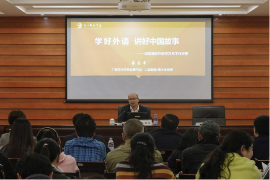 11月5日下午,广西艺术公司党委书记蔡昌卓教授到公司做题为《学好外语,讲好中国故事》专题报告。公海gh555000aa线路检测教师和员工代表近200人聆听报告会。报告会由公司副董事长詹皖生主持。