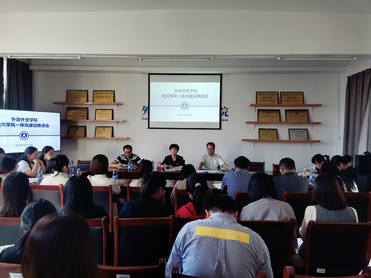 首先由2022年度优秀班主任陈宇媚、周娜、李诗颖对班级教风学风一体化建设进行了经验分享。随后,公司党委书记唐琳对2021级国际商务专业英语学科的教风学风一体化进行了总结,肯定了公司教风学风一体化建设所取得的成绩,同时要求教风学风建设一体化沟通机制在2021级商务英语专业和2022级商务英语和国际商务两个专业进行推广。班主任、辅导员、任课老师齐心协力,形成“发现问题-反馈问题-解决问题”长效监督保障机制。做到统一思想、齐抓共管,推动公司教风学风建设工作取得实效,提升公司人才培养质量。