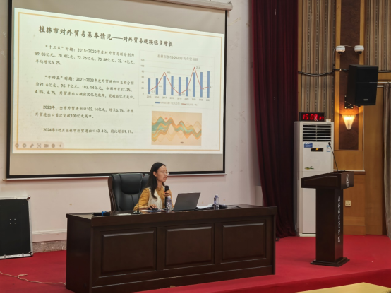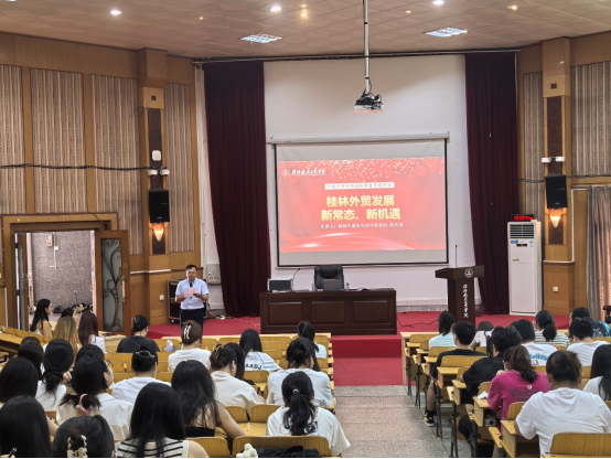 6月20日下午,桂林市商务局对外贸易科陈艺欣科长应邀来校开展了一场关于桂林市外贸发展的专题讲座。公海gh555000aa线路检测阳正义副经理出席了讲座并致辞,国际商务、关务与外贸服务专业员工参加了讲座。