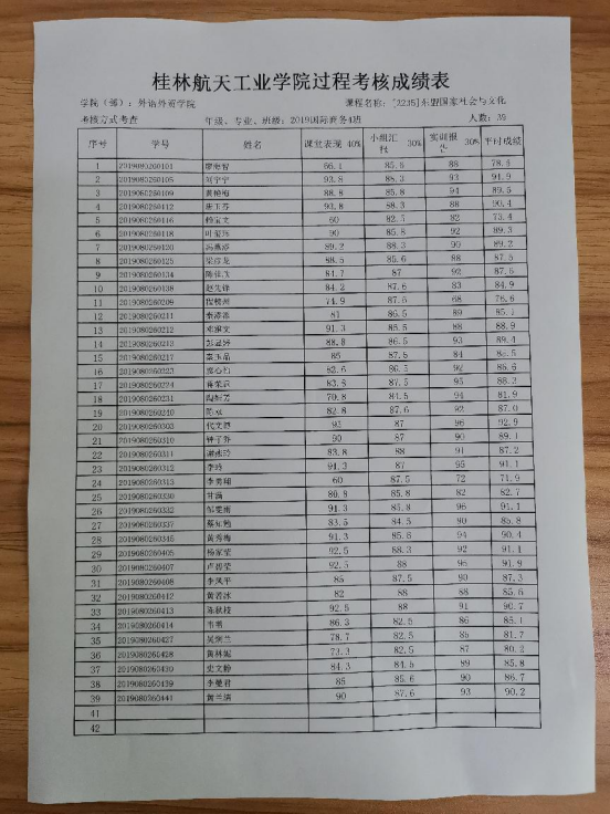 【1101】经济学原理(A)李海红老师所带班级平时成绩公示